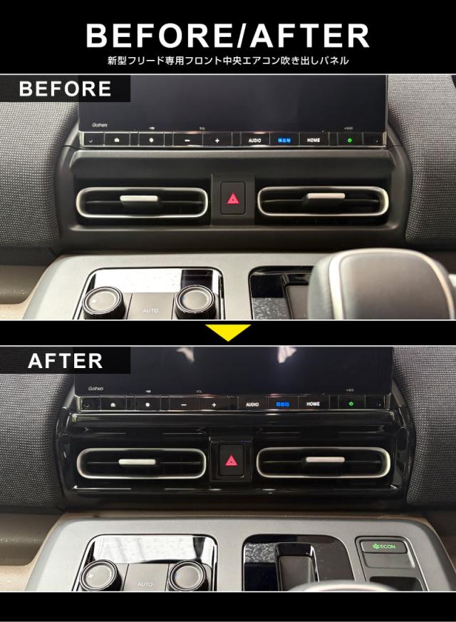 ホンダ新型フリード専用設計のフロント中央のエアコン吹き出し口周りに装着するインテリアパネルです。