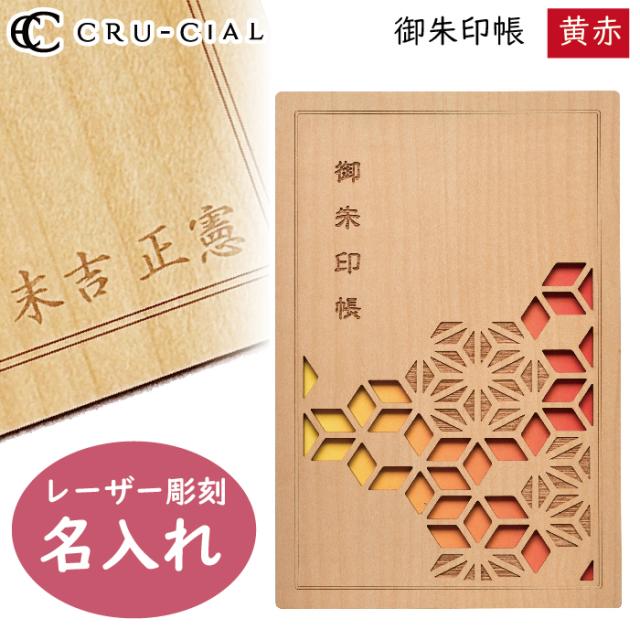 名入れ 御朱印帳 黄赤 きあか 木製 T180008K クルーシャル B6変型判 120×180mm 36ページ 高級 スタンプ帳 アルバム帳 透かし彫り かわいい 美しい 芸術的