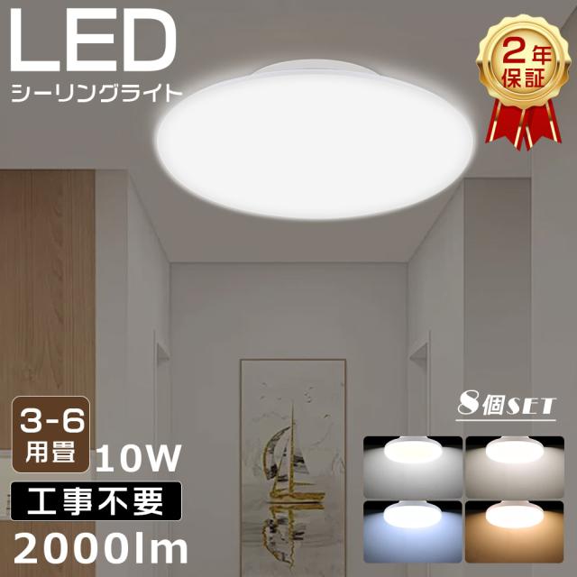 ≪8個入り≫天井照明 シーリングライト 和風 小型シーリングライト LEDシーリングライト 6畳 シーリングライト おしゃれ LEDライト 100W相当 LED照明器具 台所 10W 明るい 2000LM コンパクト 薄型 ダイニング リビング照明 玄関灯 廊下 階段 新居 子供部屋 トイレ PSE認証済