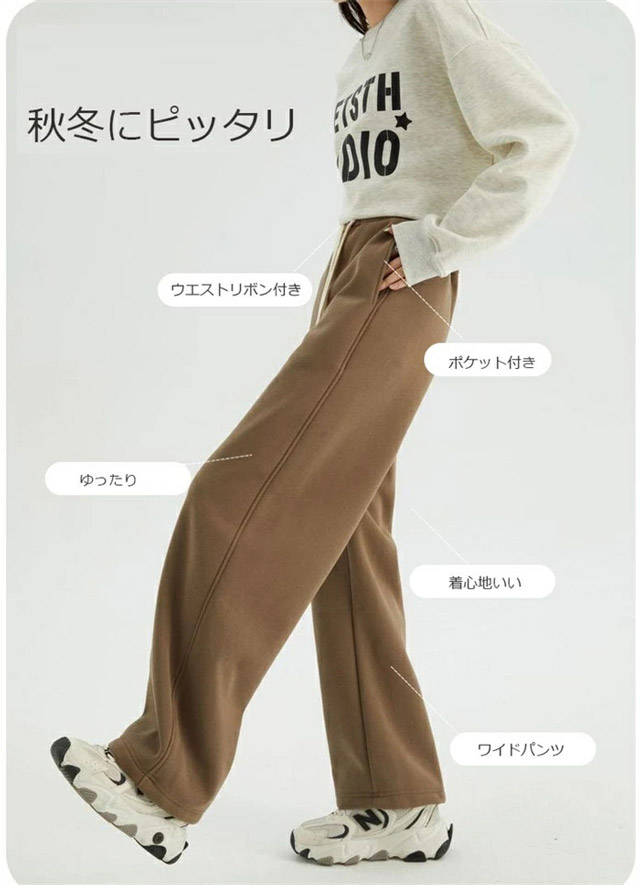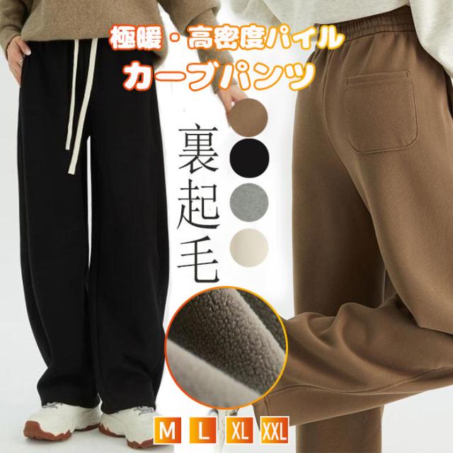 「クーポン配布中」「即納」【極暖裏ボア カーブパンツ】ワイド カーブパンツ レディース パンツ 裏起毛 ワイドパンツ スウェット ウエストゴム ゆったり 体型カバー 下半身 ジャージ 裏起毛パンツ 暖かい スウェットパンツ 裏ボア あったか おしゃれ 寒さ対策