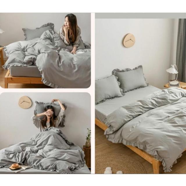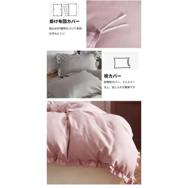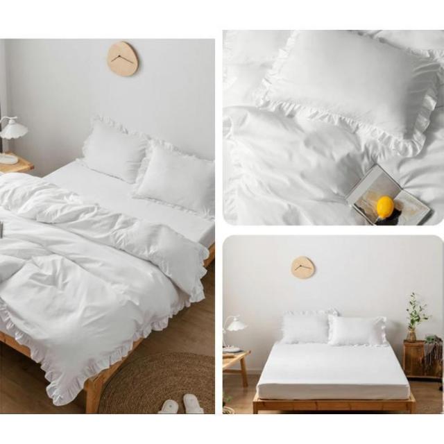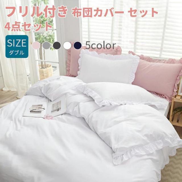 布団カバーセット 4点セット ダブル 寝具カバー フリル付き 可愛い 肌に優しい 洋式・和式兼用 北欧 夏用 丸洗いOK 姫系 寝具 190X210cm
