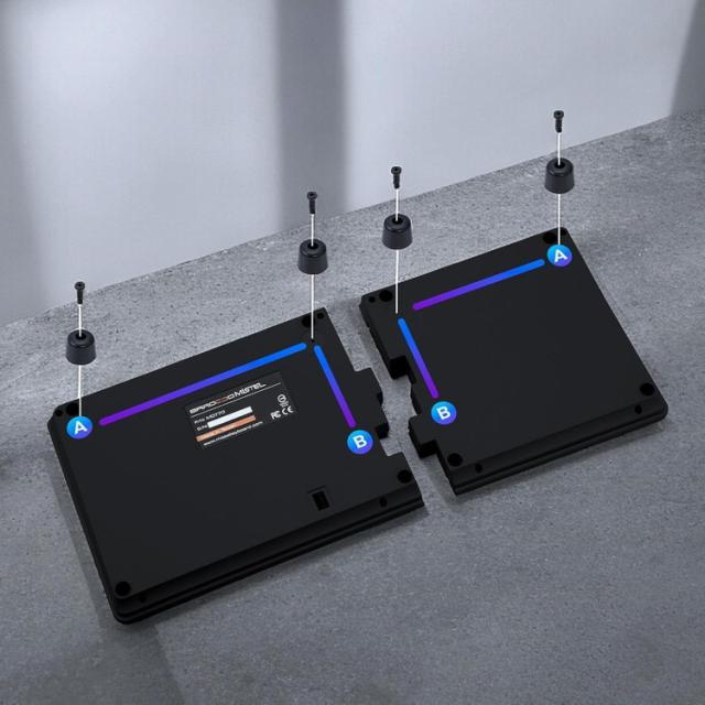 ゴム足と取り付け用のネジが4つ付属。手前に傾けたり、中央部に向かって傾斜をつけたりと自由に取り付けることができます。