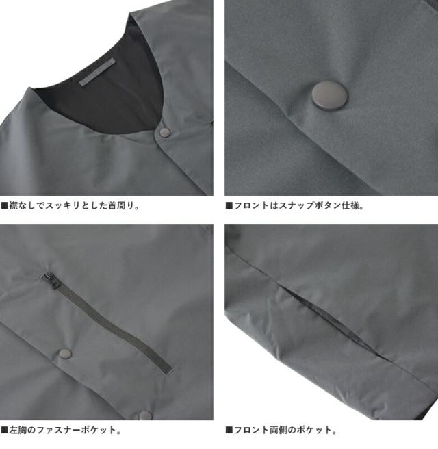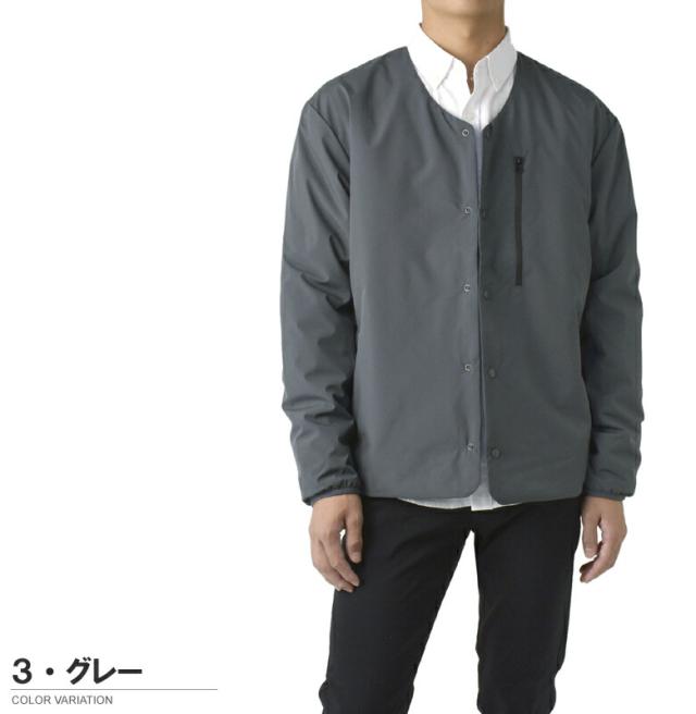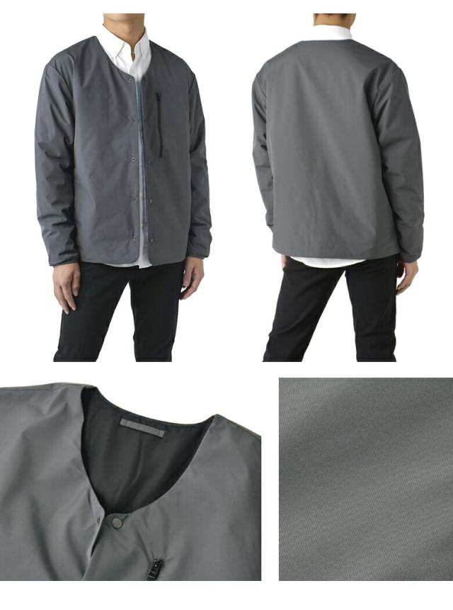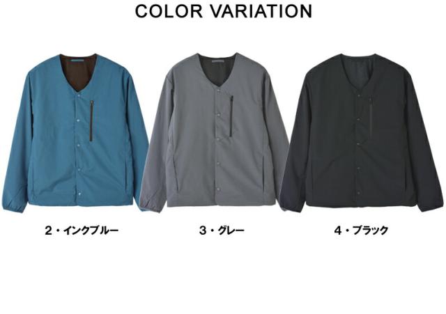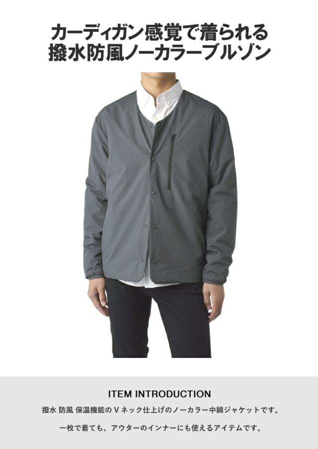 撥水 防風 保温機能のVネック仕上げのノーカラー中綿ジャケットです。 ■上記掲載画像のモデルは身長176cm・体重63kgでMサイズを着用しております。 ※お客様のディスプレー環境により色が多少違って見える場合がございます。予めご了承ください。 |