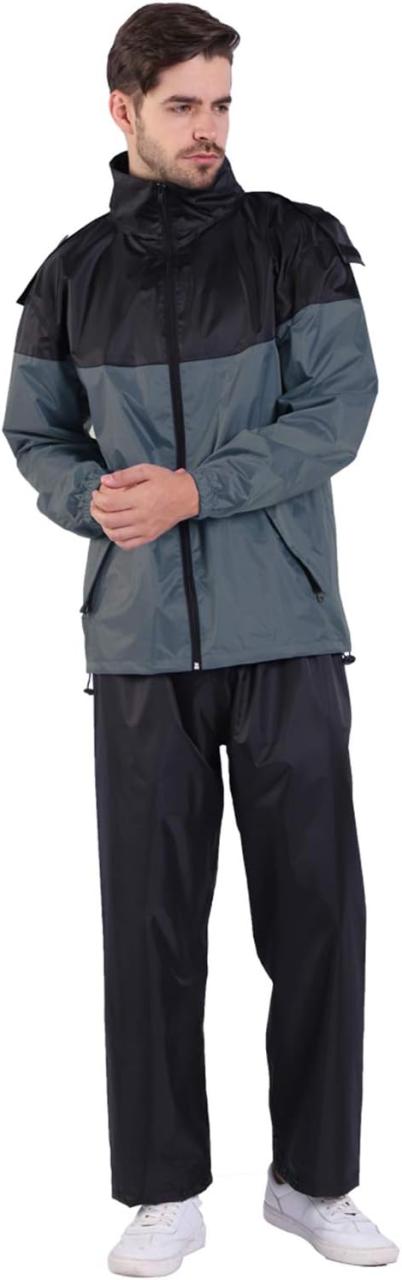レインスーツ メンズ レインスーツ 上下セット レインコート レインウェア レディース 防水 撥水 透湿 雨カッパ 雨具 自転車 バイク用レインジャケット アウトドア 通学 通勤 収納袋付き(黒い + グレーSサイズ)