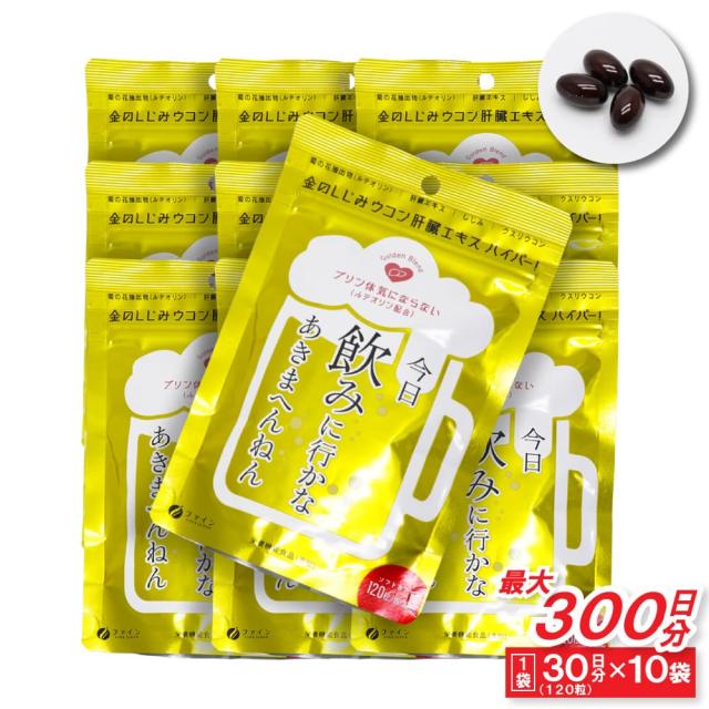 金のしじみ ウコン 肝臓エキス ハイパー! 15〜30日分(120粒) ×10袋 亜鉛 クスリウコン 菊の花抽出物 ルテオリン 栄養機能食品
