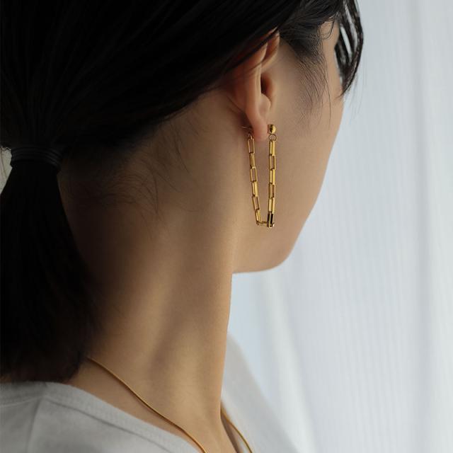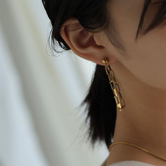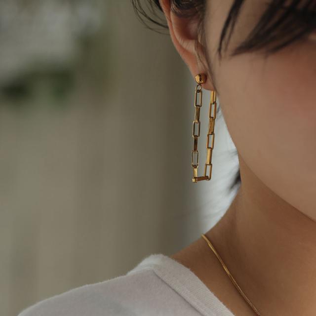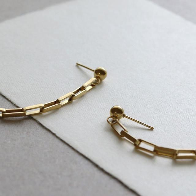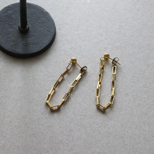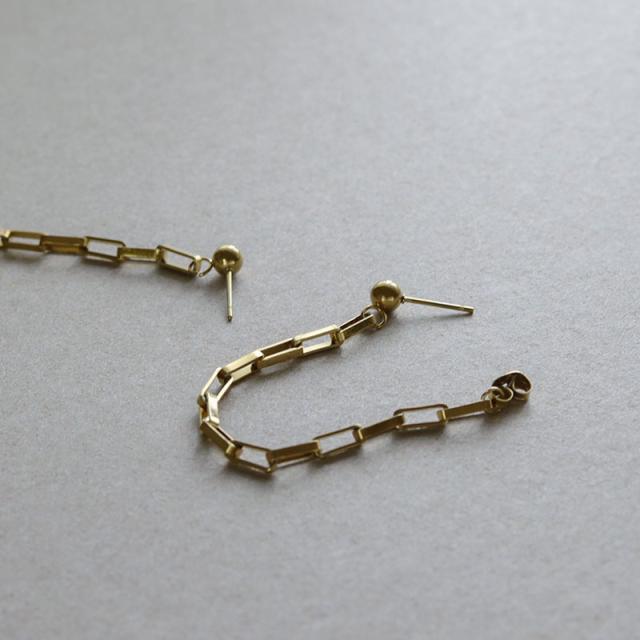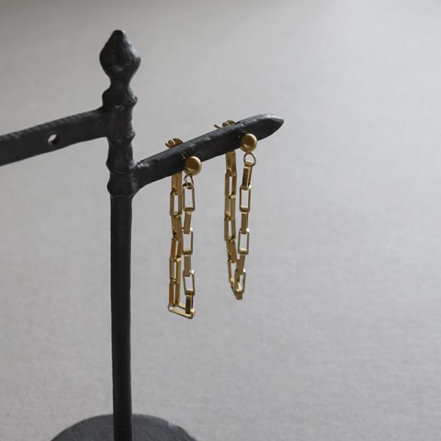 縦長なスクエア型のコマを連ねたクールな表情のチェーンピアス。