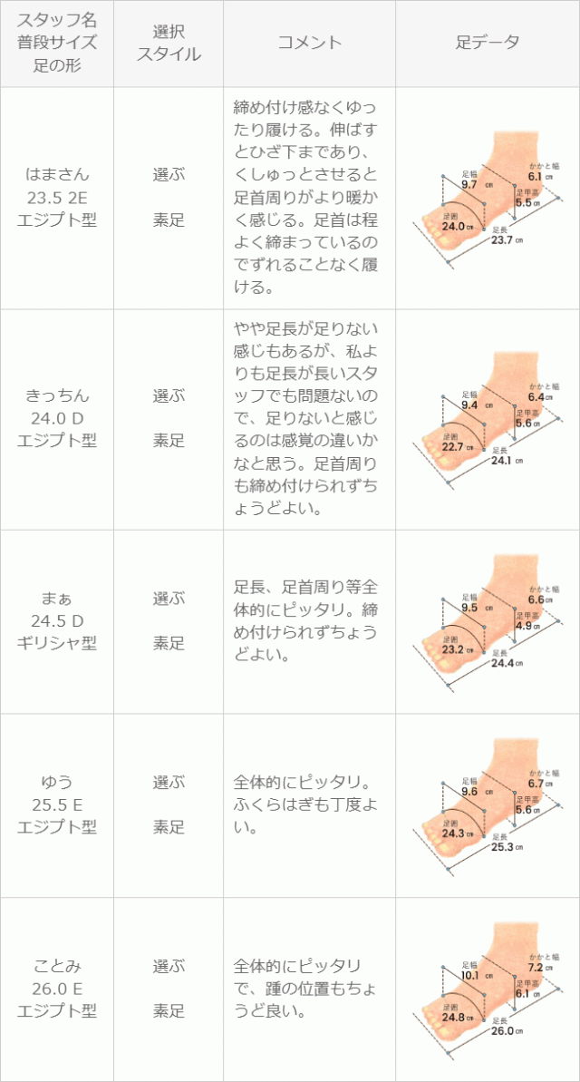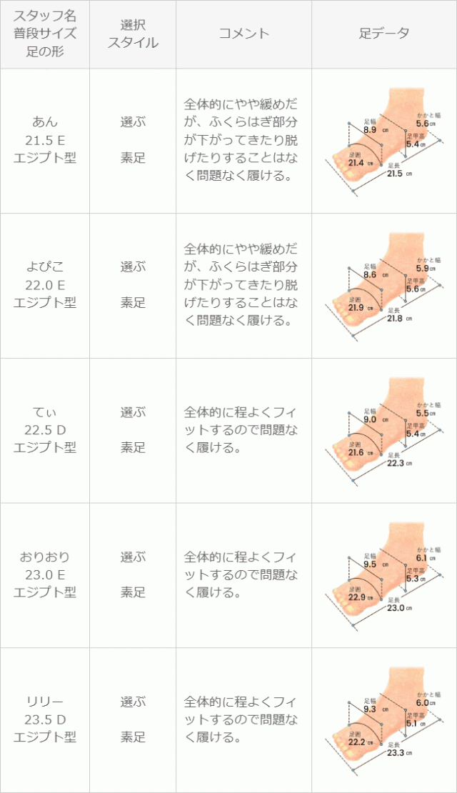 ※足の形には個人差があります。スタッフ試着感想は参考程度にお考え下さい。