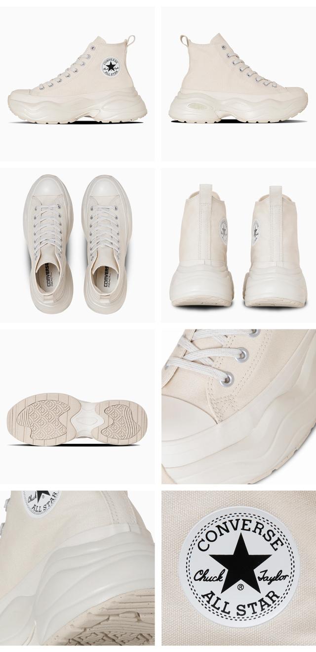 オールスターと90年代のトレーニングシューズをモチーフにしたボリュームのある厚底ソールを合体し、流線的でレトロスポーティな印象に仕上げたニューモデル。