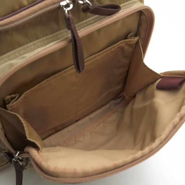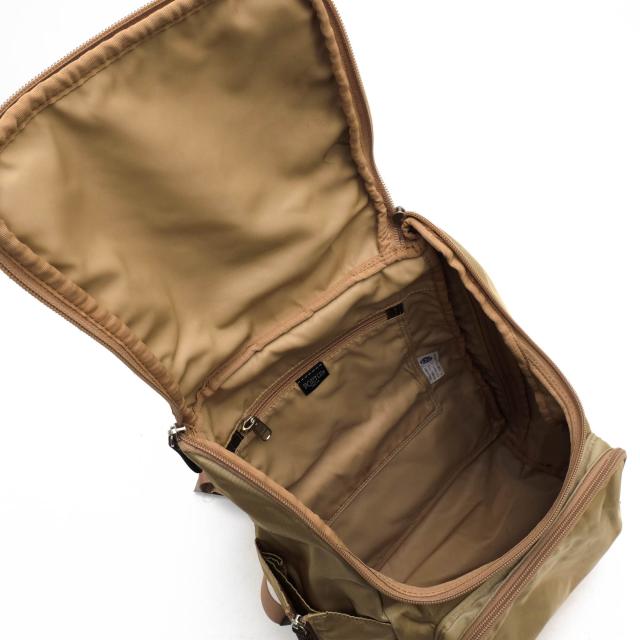 旅行をコンセプトに、ユニセックスなナイロントラベルシリーズ。表生地は弱撥水加工を施したナイロンツイルにPVC加工したものを使用。付属革は、季節によって最も良質な北米・欧州の原皮を使いわけ、クローム鞣しをして染料仕上げしたものを使用したこだわりのアイテム。大切なものが安心して入れられるように背中側に蛇腹式ポケットが配されています。旅行にはもちろん、普段使いにもオススメなバッグです。