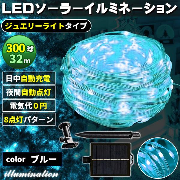 ソーラー イルミネーション 屋外 クリスマス ジュエリー屋外用 イルミネーションライト 300球 ブルー