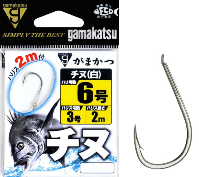 がまかつ 糸付 チヌ 白 2m 鈎5号 ハリス2号 / 黒鯛 クロダイ 針 ハリ つり具 メール便可