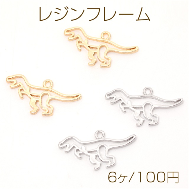 レジンフレーム 恐竜モチーフ レジン空枠 セッティングチャーム 恐竜レジン枠 1カン付き 約11×22mm (6ヶ)