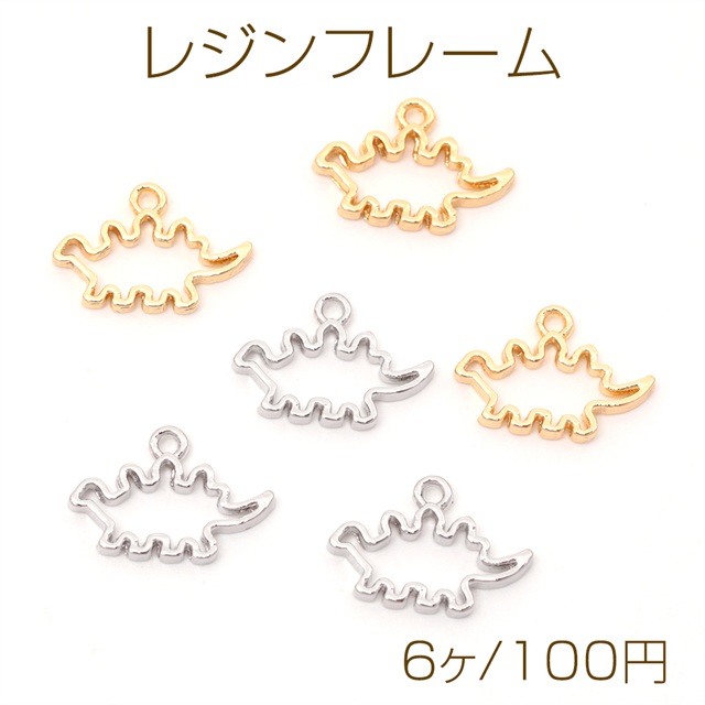 レジンフレーム 恐竜モチーフ レジン空枠 セッティングチャーム 恐竜レジン枠 1カン付き 約10×15mm (6ヶ)