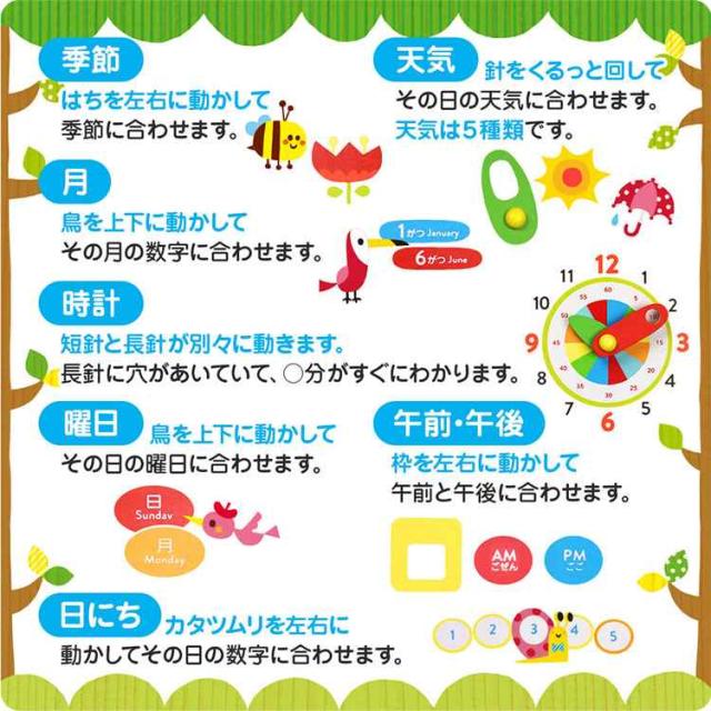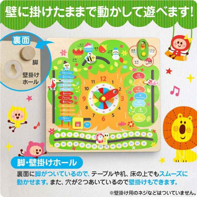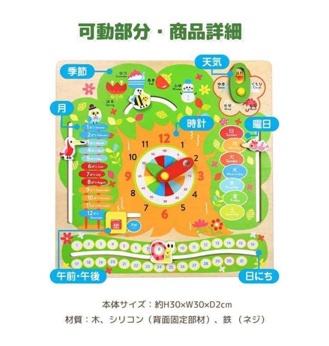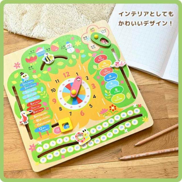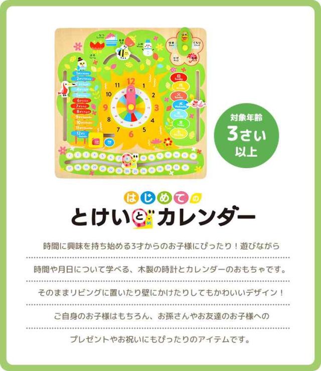 時計 おもちゃ 知育玩具 木製 はじめてのとけいとカレンダー 動く 木のおもちゃ 子供 子ども キッズ 3歳 4歳 5歳 男の子 女の子 誕生日 クリスマス 夏休み こどもの日 プレゼント ギフト 贈り物 お祝い 保育園 幼稚園 入園 準備 算数 さんすう 英語 曜日 月日 時間 練習 学習