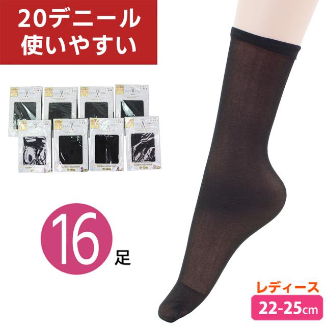 ストッキング ふくらはぎゆったり 20デニール 8セット 16足 ひざ下 膝下 ショートストッキング 22-25cm ブラック 黒【メール便送料無料】礼装用 冠婚葬祭 ビジネス用 パンツルック FRANCO VALENTINO オールシーズン対応 春夏 まるで素肌のような自然な透明感 agesugi_sfa