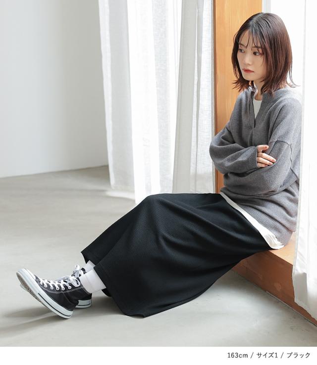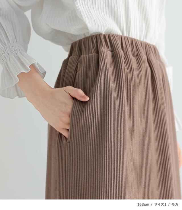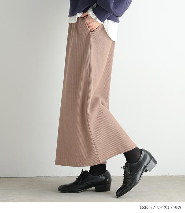 『リブニットソースカート』【メール便不可】【30】[スカート レディース ボトムス ロング マキシ リブ ニットソー スリット ストレッチ 伸縮性 ウエストゴム オシャレウォーカー]