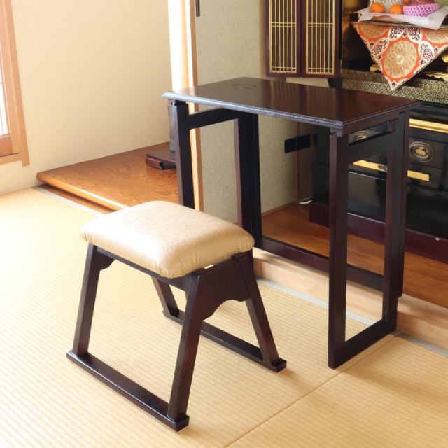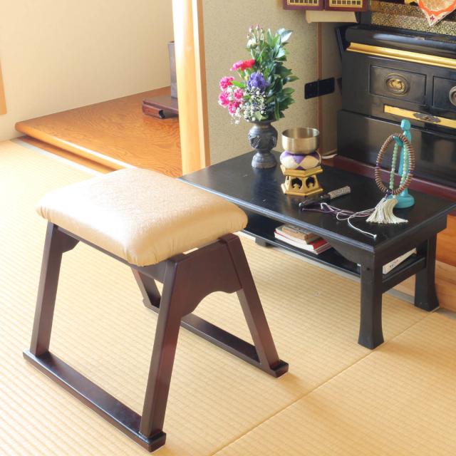 座面高さ37.5cmの椅子は、ロータイプの仏具台にもハイタイプの仏前机にも合わせてお使いいただけます。普段は玄関や寝室に置いておいて、ちょっと腰を掛けるのにも便利です。
