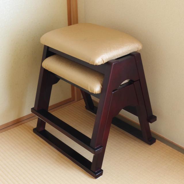 椅子 仏壇 スタッキングできる 仏壇前椅子 ゴールド 高さ37.5cm ( 仏具 イス チェア 天然木 積み重ね 法事 法要 畳 たたみ 傷みにくい クッション付き 座面高 37.5センチ 腰掛け 木製 スツール いす チェアー スタッキング )