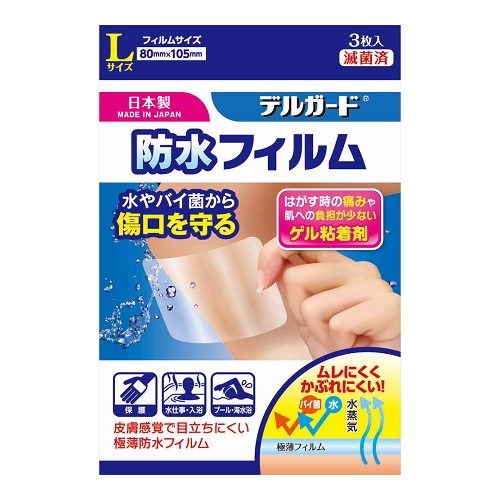 ●ガーゼやパッド等の上から貼るだけで傷口を水より守ります。