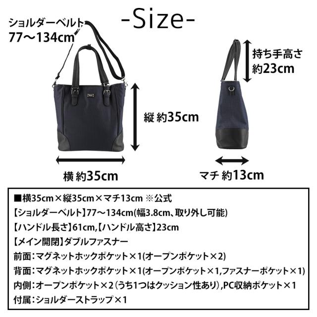 | サイズ(約) ※当店実寸値 | 公式サイズ 横35cm×縦35cm×マチ13cm 【ショルダーベルト】77〜134cm(幅3.8cm、取り外し可) 【ハンドル高さ】23cm 【ハンドル長さ】61cm | ||