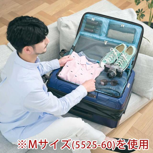 拡張部の上下には特許技術を用いた形崩れを防止する特殊プレートを内蔵しているため、荷物の出し入れ時にスーツケースを横にしても形状が崩れません。