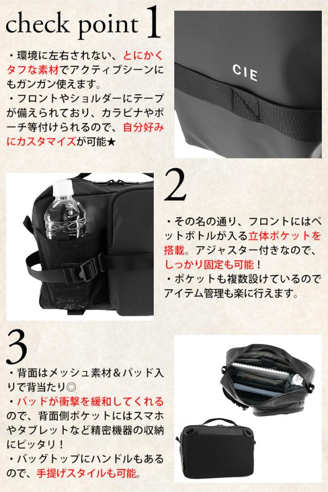 【最大900円OFF】モールクーポン対象! シー バッグ ショルダーバッグ 手提げバッグ 横型 CIE グリッド3 ボトルショルダーバッグ L B5 032068 メンズ レディース 日本製