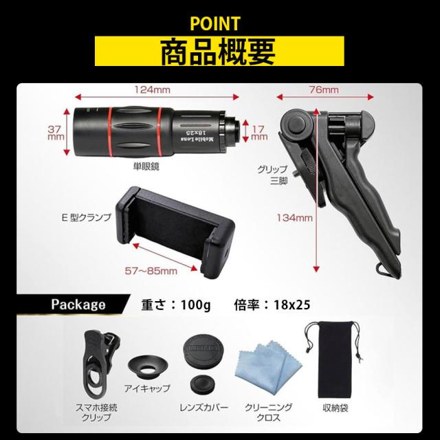 \即納/単眼鏡 望遠鏡 高倍率 スマホ 望遠レンズ スマホ用望遠レンズ 軽量 スマホレンズ 多機能三脚付属 小型 紅葉 観戦 鑑賞 ハイキ