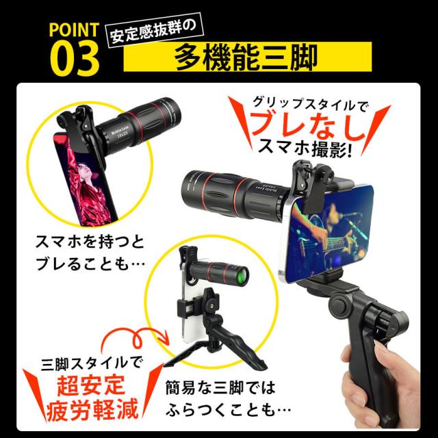 【即納】単眼鏡 望遠鏡 高倍率 スマホ 望遠レンズ スマホ用望遠レンズ 軽量 スマホレンズ 多機能三脚付属 小型 紅葉 観戦 鑑賞 ハイキ