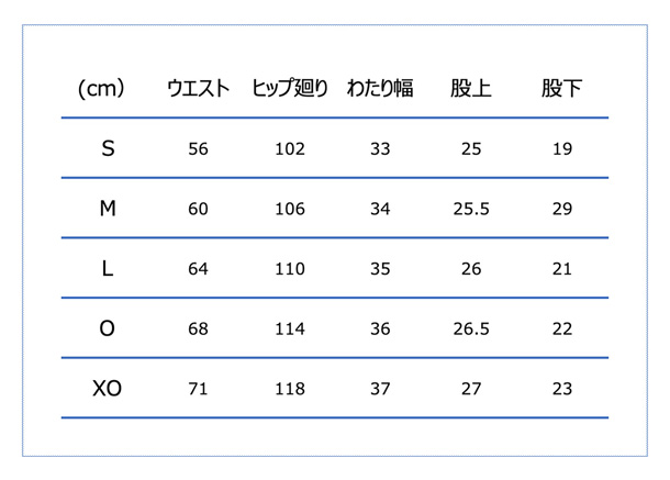 サイズ:身長 / チェスト / ウエスト / ヒップ