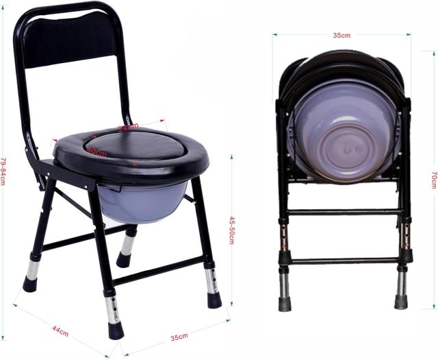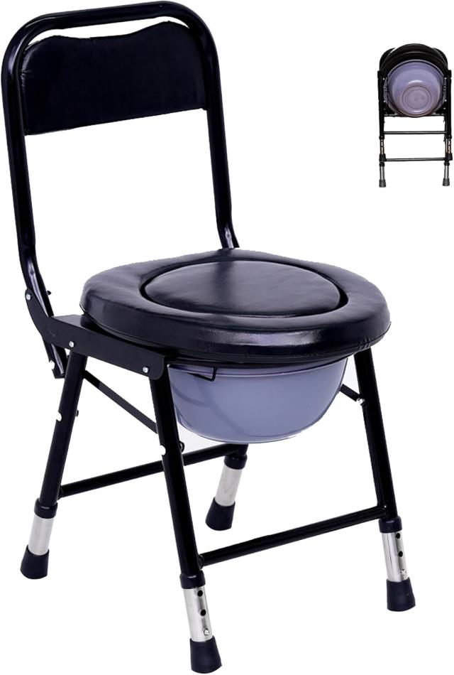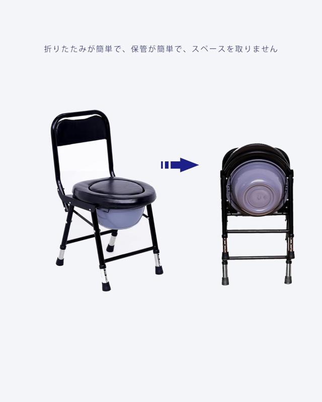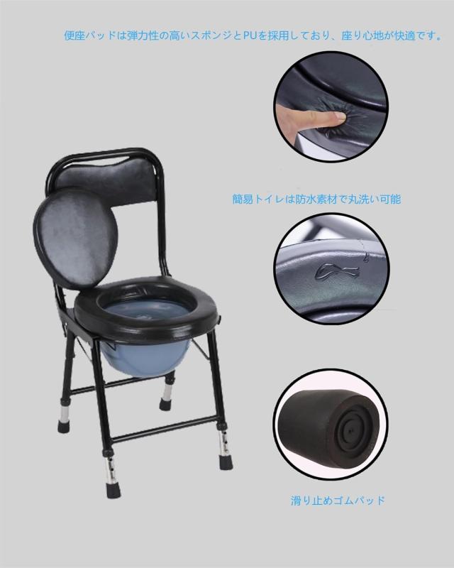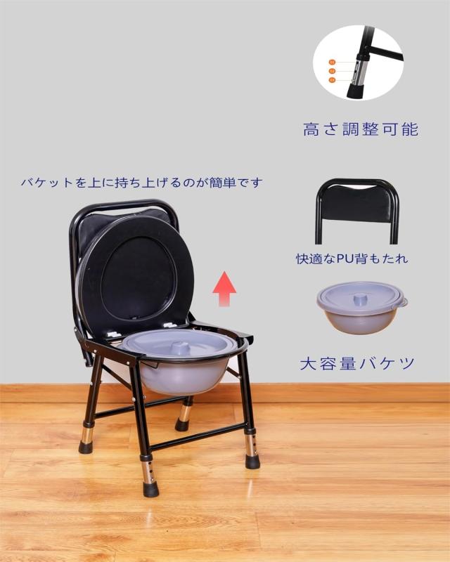 ポータブルトイレ 高さ調整可能 介護用 折り畳み 簡易便座 携帯トイレ 防災 非常用 簡易トイレ 大人用 高齢者 介護用品 組立不要 水洗可能 フタ付き 防滑 (ブラック) 送料無料