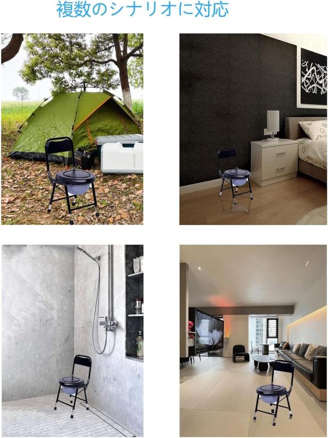【組み立て不要、収納が便利です】組立不要のポータブルトイレ:介護や災害時に便利な携帯用トイレです。 【快適&安全】簡易トイレ の背もたれと座面には柔らかな高反発レザーを使用しており、座り心地抜群です。トイレチェアは4つの幅広のゴム製吸盤をサポートとして使用します。 滑りにくく安定感があるので、トイレチェアのズレを防ぎ、体重のある方でも安定してご使用いただけます。最大荷重は150kgです。