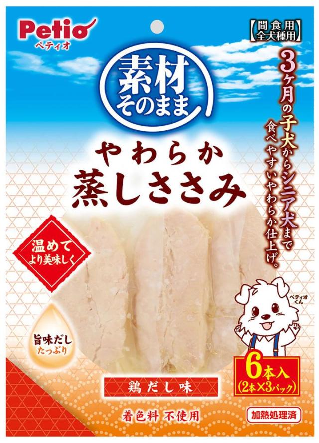ペティオ 素材そのまま やわらか蒸しささみ 鶏だし味 6本入 返品種別B