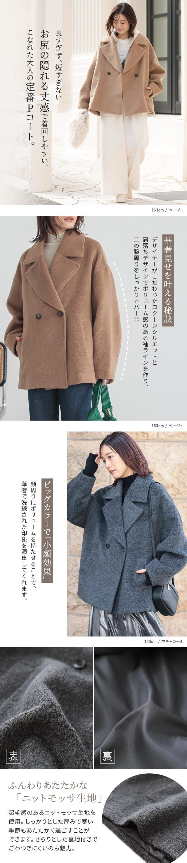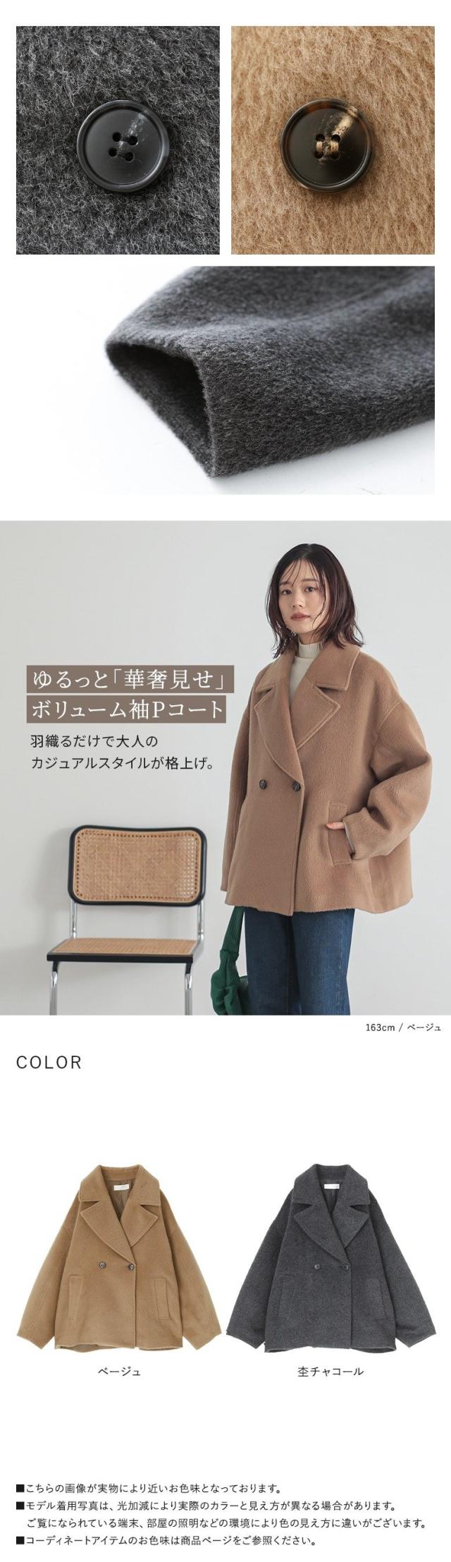 コート レディース アウター Pコート ショート丈 ミドル丈 ジャケット コクーン ボリューム袖 ニットモッサ 裏地付き 【TP】 羽織り ブルゾン ピーコート 襟付き ビッグカラー n'OrLABEL ノア—ルレーベル 大人女子 大人可愛い お洒落可愛い 大人カジュアル ベーシック ニュアンス ラフ エフォートレス オフィスカジュアル 長袖 コクーン袖 ミディ丈 ドロップショルダー オーバーサイズ 無地 ポケット 防寒 あったか 秋 冬 カジュアル シンプル ナチュラル モード キレカジ フェミニン 上品 きれいめ Sサイズ Mサイズ Lサイズ LLサイズ 3Lサイズ XLサイズ フリーサイズ ぽっちゃり 体型カバー 大きいサイズ プラスサイズ 10代 20代 30代 40代 50代 60代 女子会 オフィス 通勤 通学 お買い物 お出掛け 旅行 リゾート レジャー おしゃれ お洒落 トレンド 流行 osharewalker オシャレウォーカー おしゃれうぉーかー ベージュ グレー 灰色 チャコールグレー チャコール[ID]14om0te