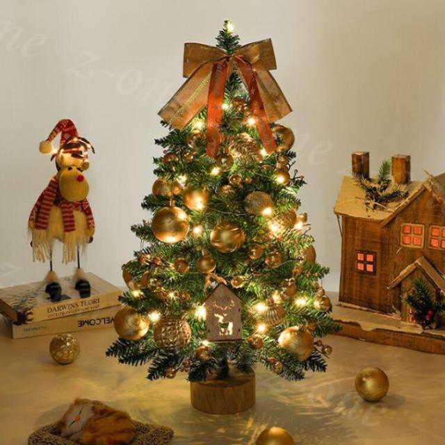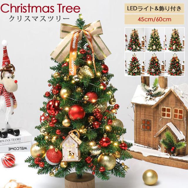 クリスマスツリー 45cm 卓上 ミニツリー クリスマス飾り LEDイルミネーション サンタクロース サンタ 置物 北欧 玄関 室内 アンティーク おもちゃ インテリア 簡単な組立品