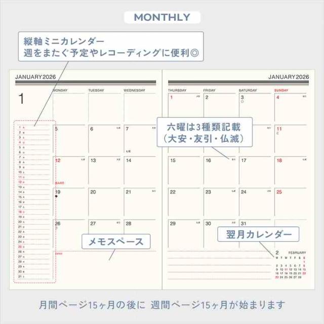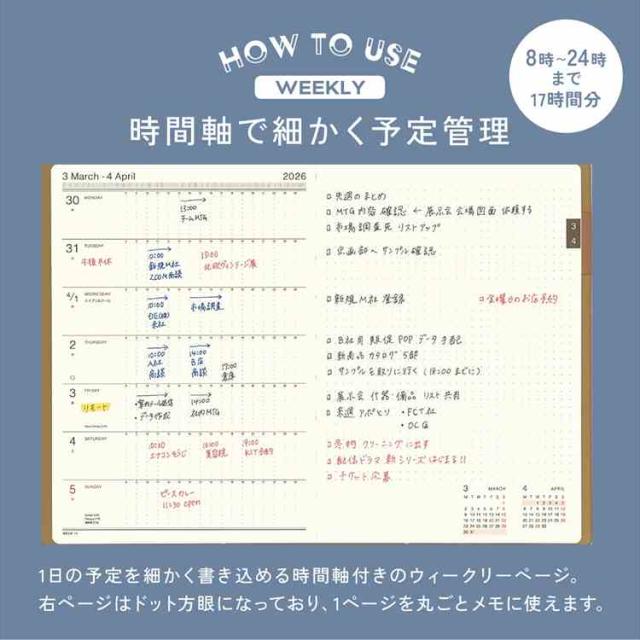 ウィークリーページはスケジュール管理しやすいレフトタイプ。