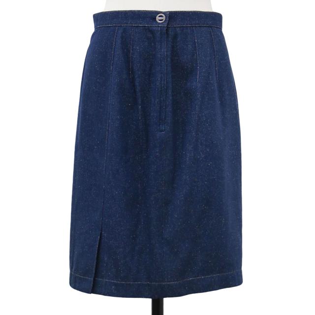 LEONARD レオナール スカート ブルー サイズ:70-95(11〜13号相当) シルク デニム タイト ミニ スカート / ひざ上 スリット ボトムス【レディース】【中古】【K4286】