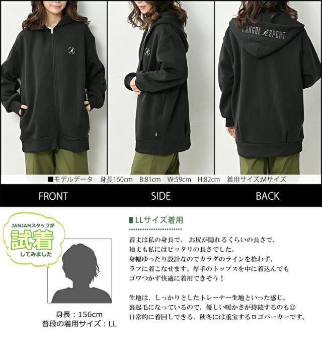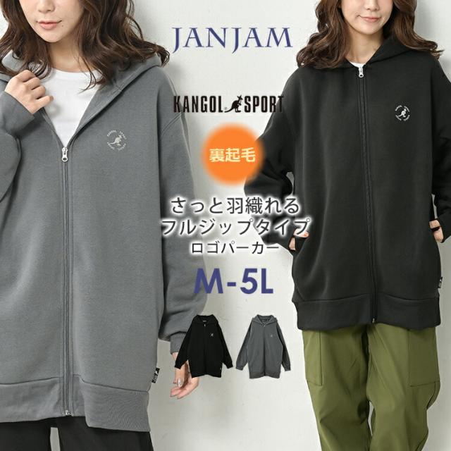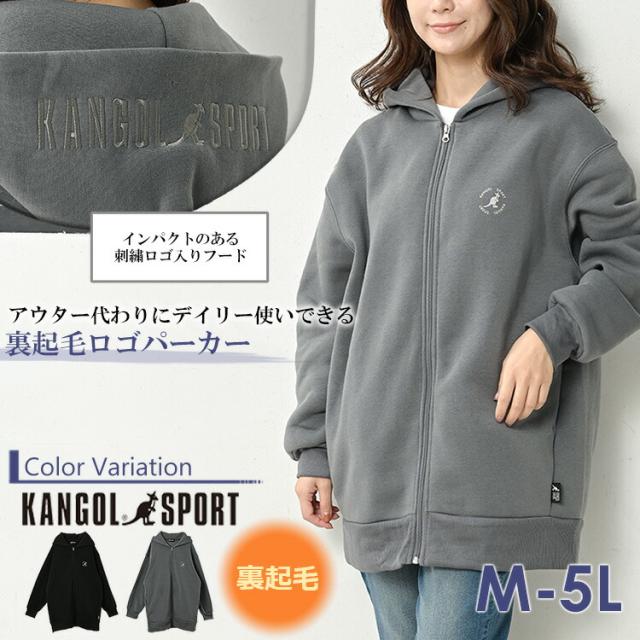 大きいサイズ レディース ZIPパーカー 長袖 あったか裏起毛 フーディー アウター KANGOL SWT M/LL/3L/4L/5L ゆったりサイズ ぽっちゃり女子 プラスサイズ