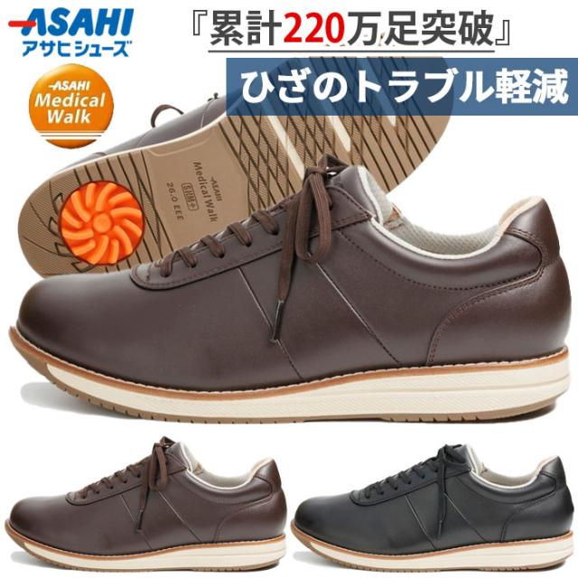 3E幅 アサヒシューズ メンズ メディカルウォーク WK M039 ひざ関節を守る歩行をサポート ウォーキングシューズ スニーカー 旅行 散歩 天然皮革 ファスナー付 ブラック 黒 ブラウン 茶色 送料無料 asahi shoes