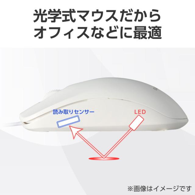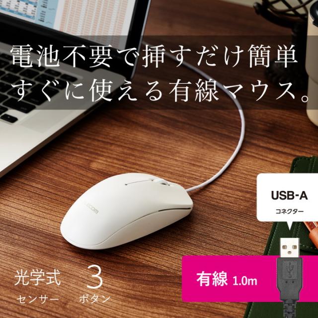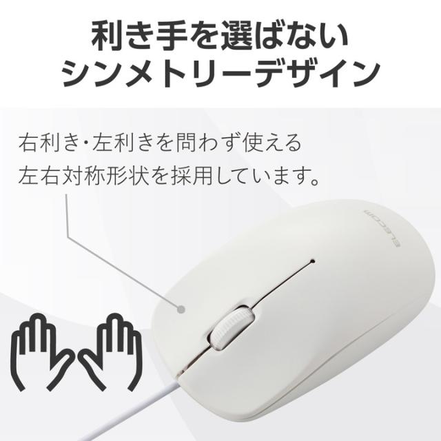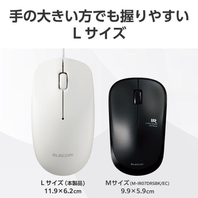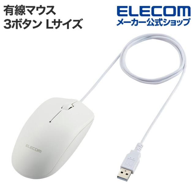 エレコム 有線 3ボタン 光学式 マウス Lサイズ ワイヤレス 左右対称 ホワイト┃M-LE10URXWH