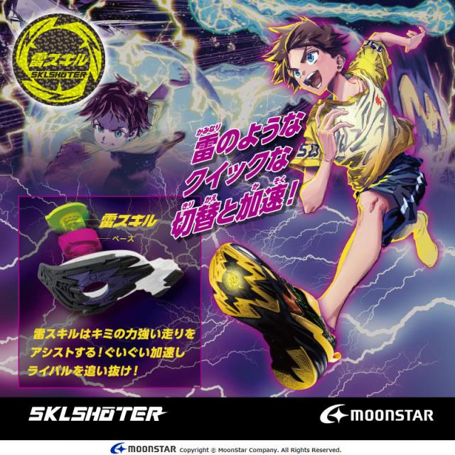 男の子の様々な潜在能力を解き放つシリーズ「スキルシューター」の「雷スキル デンゲキ」です。「スキルを解き放て」をコンセプトに子どもたちの多様化するシーンに合わせた「SKL」をアウトソールに搭載しており、踏み込む際に靴底のSKLが地面を捉え、走るための蹴り出しをアシストします。「雷スキル」は雷をモチーフにしたスパイク形状の「SKL」が走る際に地面を捉え、走りをアシストします。重さは17.0cmで片足約135gです。【Ag+抗菌防臭】銀イオンの抗菌作用でにおいのもととなる菌の増殖を抑制し、防臭効果を発揮します。【洗えるインソール】インソールは取り出して洗えるのでいつも清潔に保てます。【耐摩耗ラバー】靴底にはすり減りが少なく、高い耐久性を発揮するラバーを採用しています。脱ぎ履きしやすいゴム紐×バンドタイプです。外遊びはもちろん、運動会や体育の時間等のスポーツシーンにもおすすめです。アッパーには激しい雷撃模様を鮮やかなカラーで表現しました。