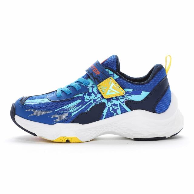 男の子の様々な潜在能力を解き放つシリーズ「スキルシューター」の「爆(バースト)スキル ダイナバースト」です。足幅が広めのお子さまに向けた「3E」商品です。「スキルを解き放て」をコンセプトに子どもたちの多様化するシーンに合わせた「SKL」をアウトソールに搭載しており、踏み込む際の荷重によって踏み付けと踵に搭載した高反発の「SKL」が発動します。「爆(バースト)スキル」は爆発をモチーフにした球状の「SKL」が踏み込む際に発動し、機敏な動きをアシストします。重さは21.0cmで片足約230gです。【Ag+抗菌防臭】銀イオンの抗菌作用でにおいのもととなる菌の増殖を抑制し、防臭効果を発揮します。【洗えるインソール】インソールは取り出して洗えるのでいつも清潔に保てます。【耐摩耗ラバー】靴底にはすり減りが少なく、高い耐久性を発揮するラバーを採用しています。脱ぎ履きしやすいゴム紐×バンドタイプです。外遊びはもちろん、運動会や体育の時間等のスポーツシーンにもおすすめです。爆風モチーフのグラフィックや砕けた破片をイメージした表現とアシンメトリーなデザインがポイントです。