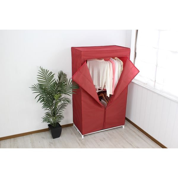 商品仕様: ハンガーラック 衣類収納 約幅91cm レッド 赤 不織布 カバー付き スチールパイプ スーツラック ベッドルーム 寝室