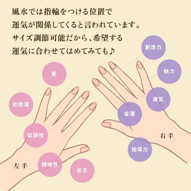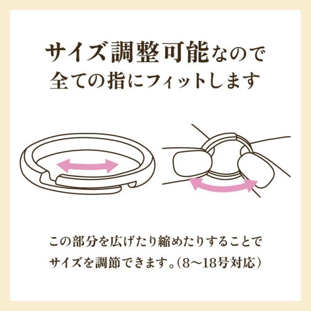 サイズは8号から18号まで調整可能で、指にぴったりフィット。ユニセックスデザインのため、男女問わずお使いいただけます。ゴールドカラーの高級感ある仕上がりで、日常使いから特別な日のアクセサリーとしてもぴったりです。
