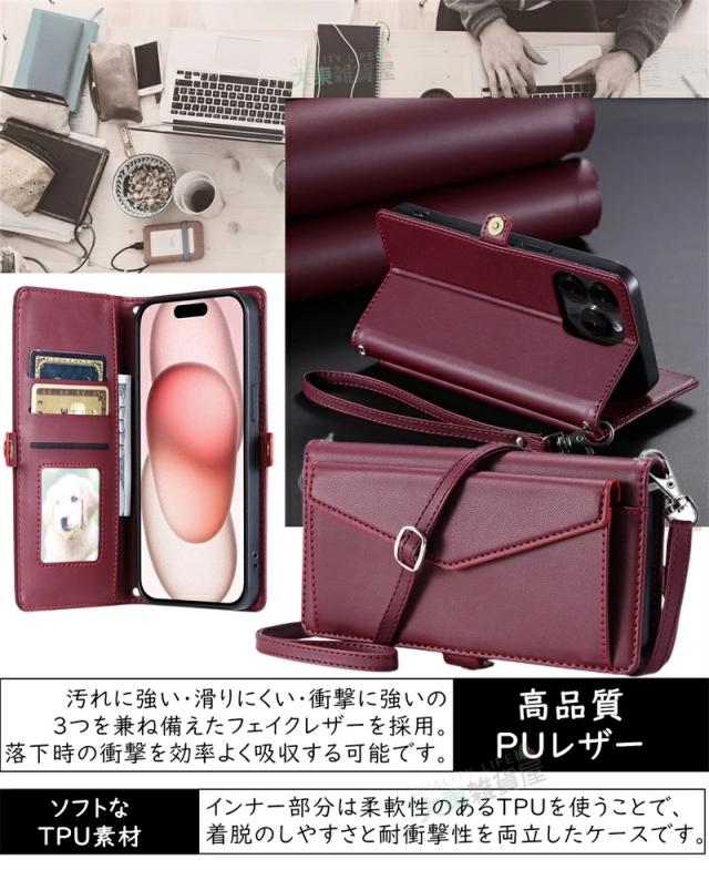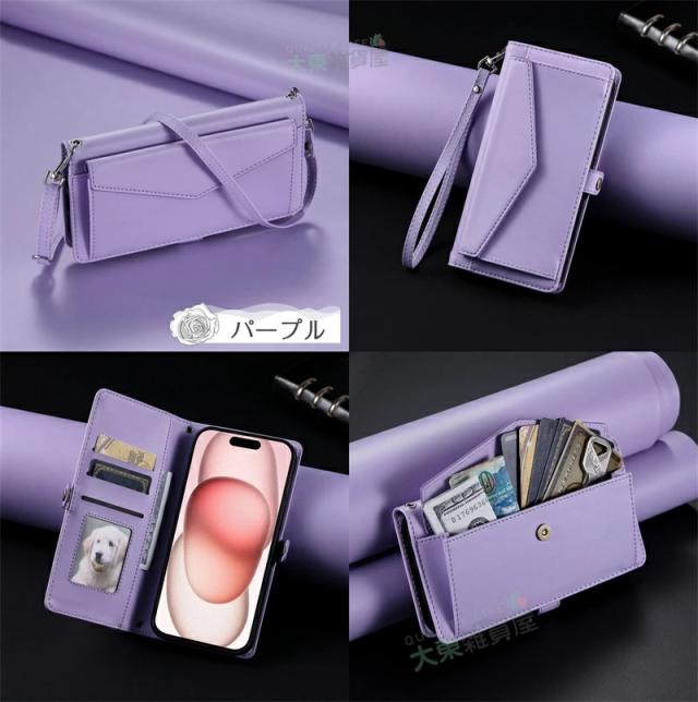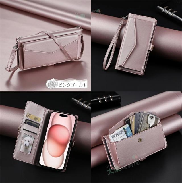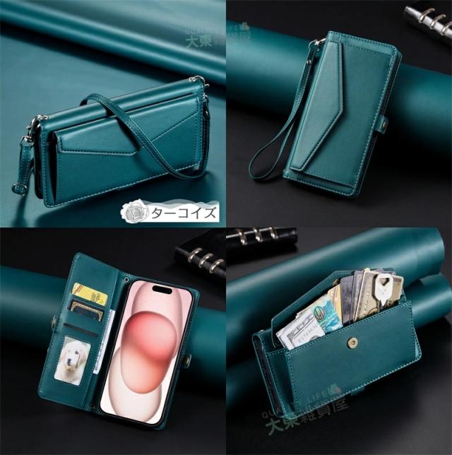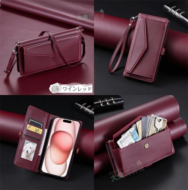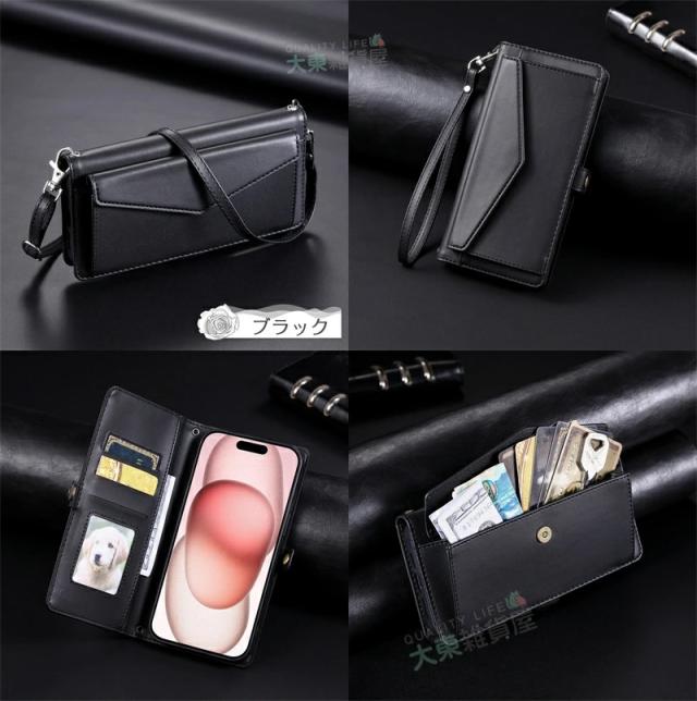 iPhone 17 16 15Pro ケースマルチポケット付き 手帳型 ストラップ付き アイホン 14 14Pro 16Plus 13mini 12mini 12 11 Pro Max SE3 XS スマホケースショルダー タイプ 携帯ケース 手帳型ケース ショルダーストラップ付き シンプル 大人 女子 男子 メンズ レディース お財布
