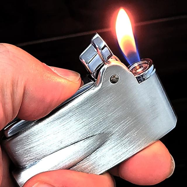 横長の形状は、手のひらに載せて親指で着火することを想定しており、非常に使いやすいライターです。