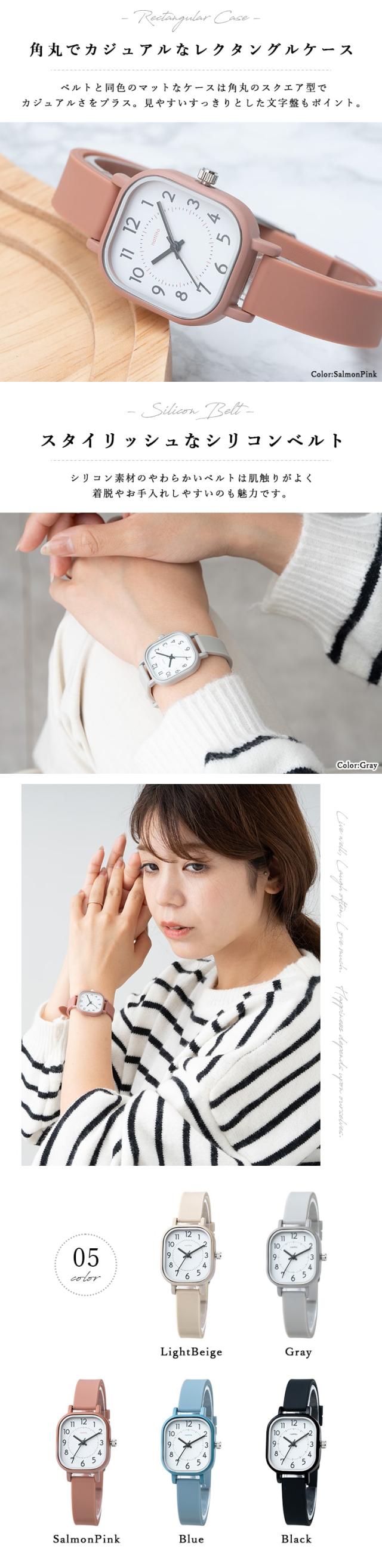 腕時計 レディース シリコンベルト ウォッチ ラバー 四角 スクエア トノー ケース かわいい おしゃれ 大人 仕事 学生 受験 20代 30代 40代 女性 プレゼント ギフト 見やすい 日本製ムーブメント 1年間のメーカー保証付