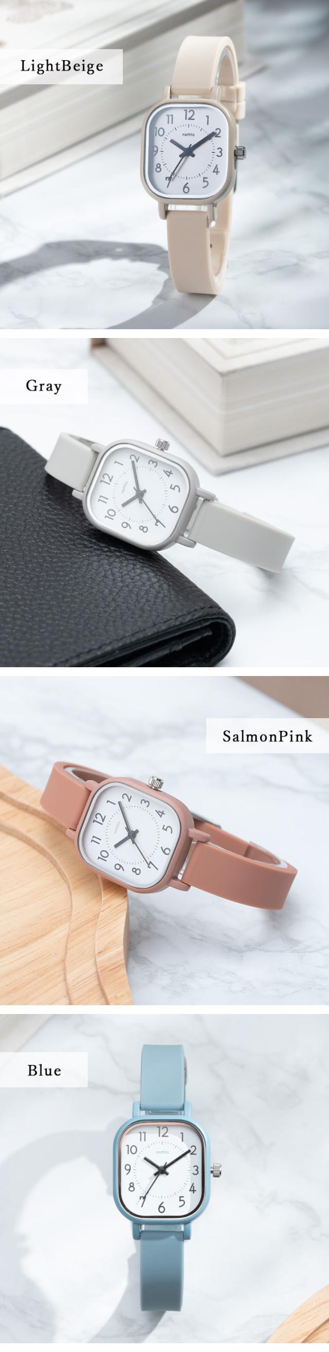 - ブラックを購入。とても見やすい文字盤とスクエア型がおしゃれです。ベルトが細めで腕にも馴染みやすいと思います。他の色も欲しくなりました。