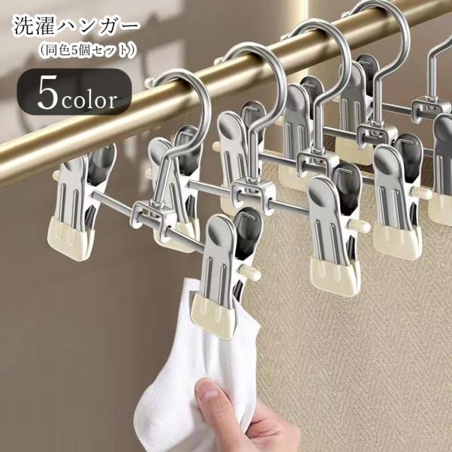 洗濯ハンガー ズボン用ハンガー ハンガーピンチ 同色5個セット 洗濯用品 収納雑貨 収納グッズ 2連 クリップ ツートンカラー
