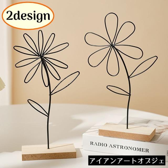 オブジェ 置物 インテリア 卓上 装飾 飾り オーナメント アイアンアート ワイヤーアート フラワー 花 北欧風 おしゃれ 木製