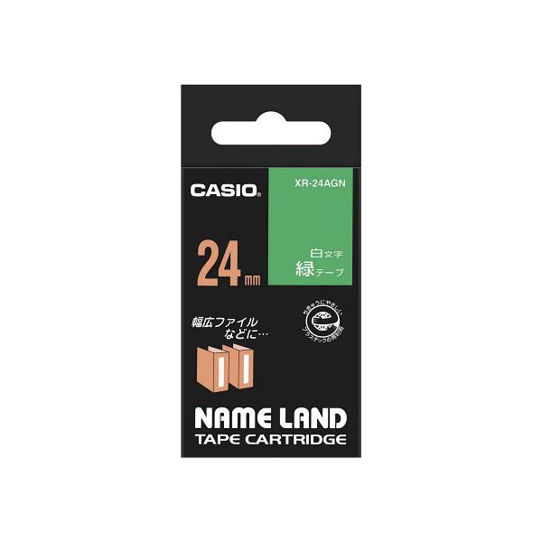 カシオ計算機 ネームランドテープ 24mm 白文字 緑 XR-24AGN 鮮やかな緑の文字が輝く、24mm幅のネームランドテープ あなたのアイデアを一層引き立てる、ネームランドテープの新たなる進化形